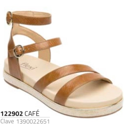 Meet style 122902, a synthetic sandal made with the comfort and style seal of Flexi shoes. Its double textured sole and its footbed insole offers great comfort due to its anatomical design. This shoe has a pu/rubber sole, a pu insole and synthetic lining.